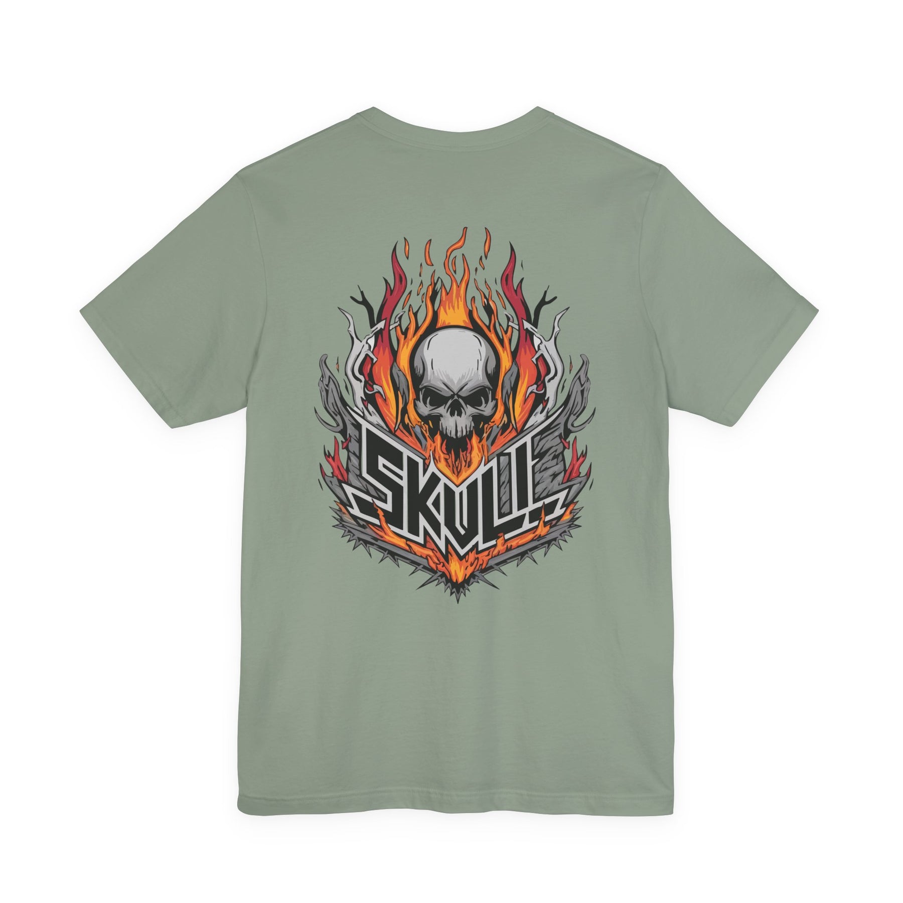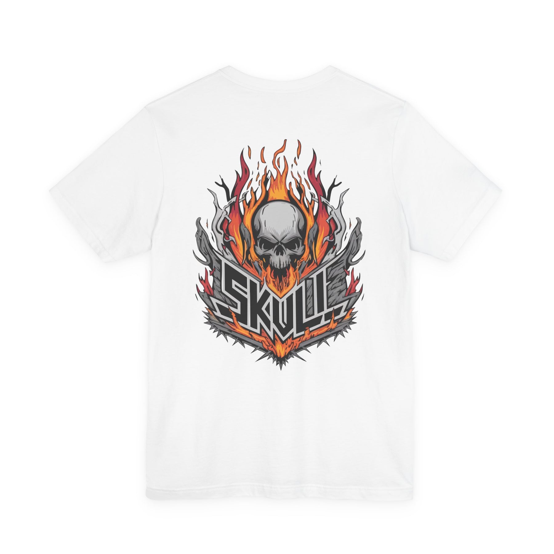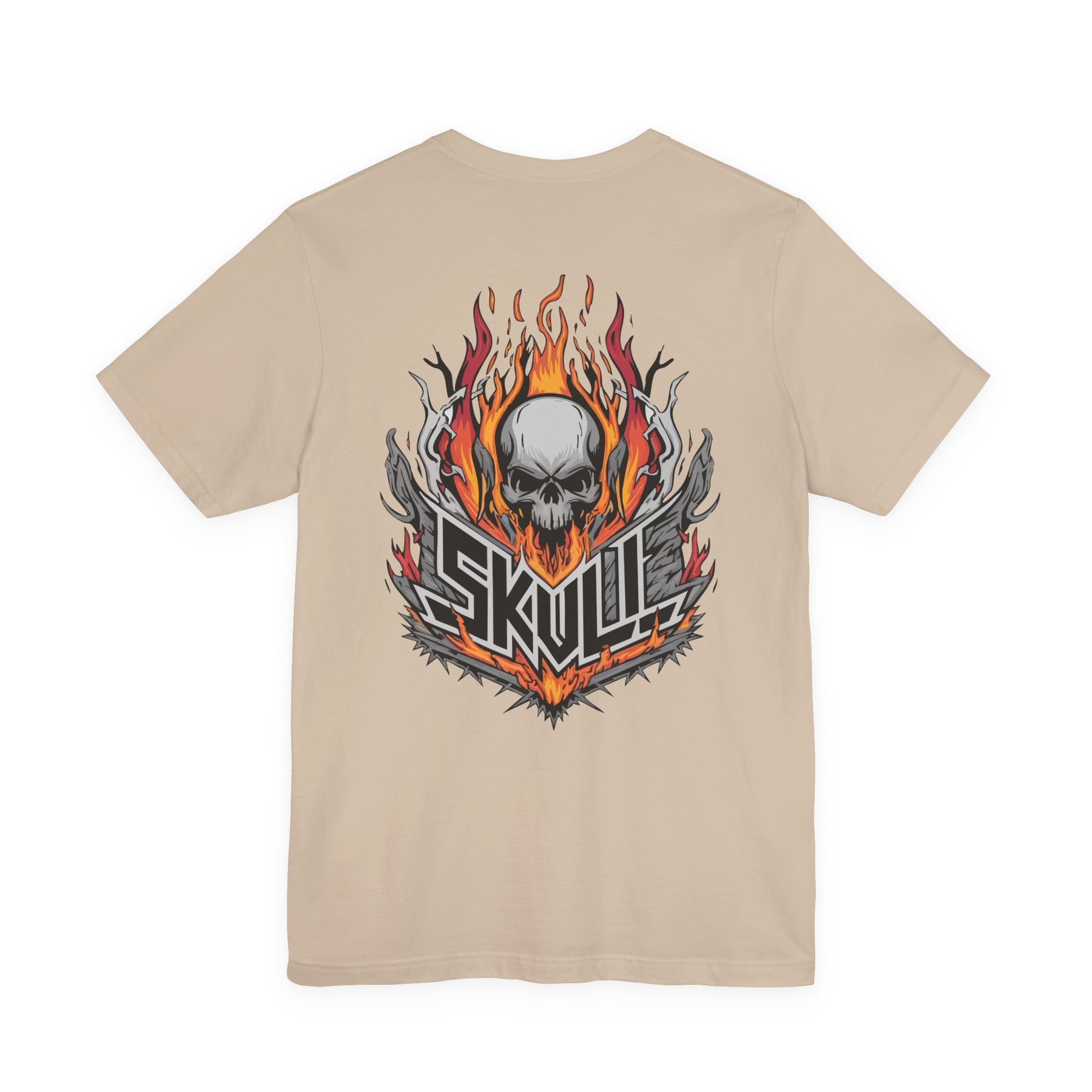This lightweight tee wears like rebellion and warmth all at once. A smoldering fire-skull print sits front and center, its flickering flames rendered with crisp detail — the kind of image that turns heads and starts conversations. Soft, airy cotton drapes close to the body without clinging, so the design reads clearly whether you’re layered under a jacket or standing alone in the heat of a summer street show. The ribbed collar and shoulder tape keep the silhouette neat after washes, while side seams preserve shape so the shirt stays true to the moment you first put it on. It’s made for people who collect lived-in looks: riders, gig-goers, firepit storytellers, and anyone who likes a little edge in their everyday. Wear it to late-night bonfires, underground shows, or when you want your outfit to say, quietly and fiercely, that you’ve got stories worth hearing.