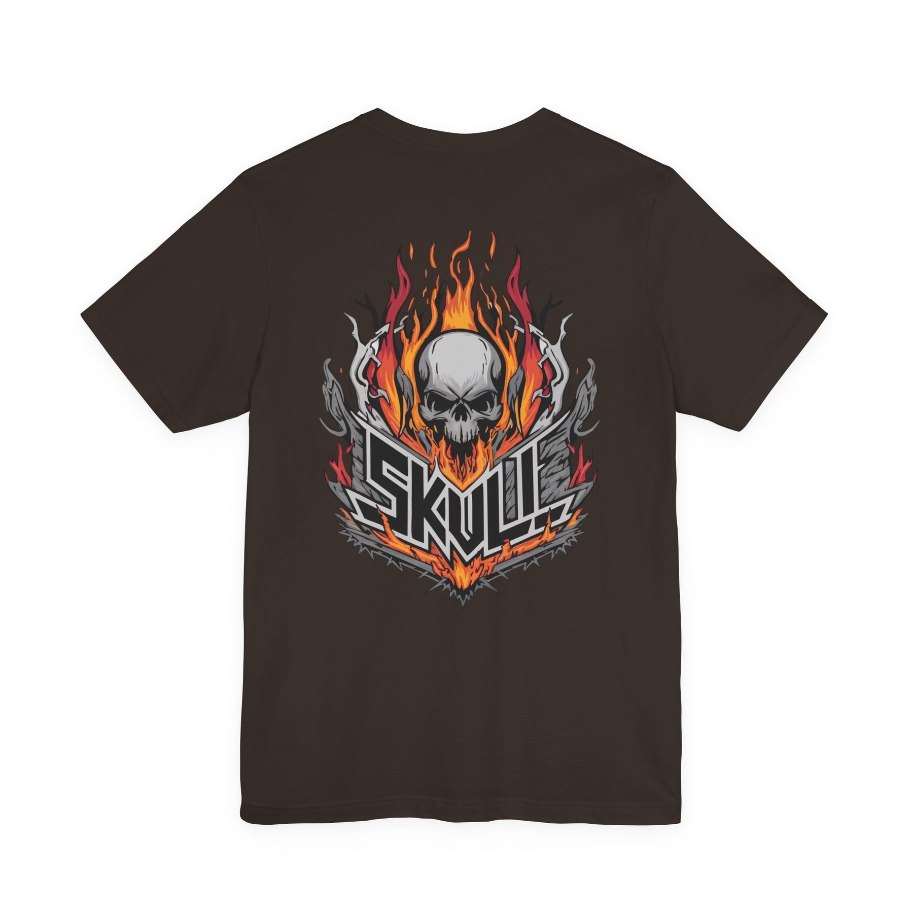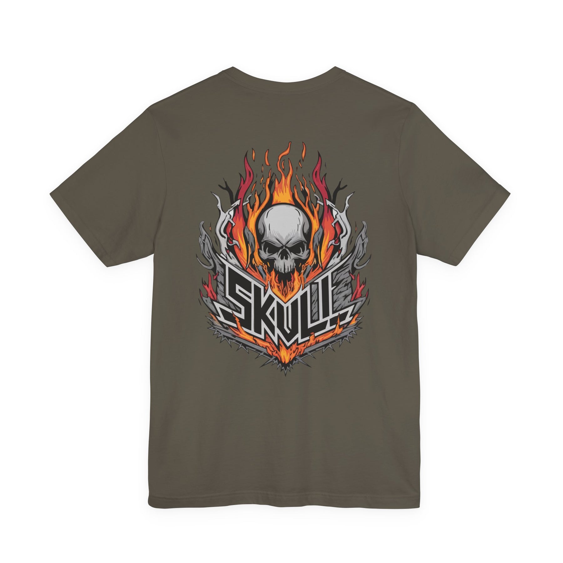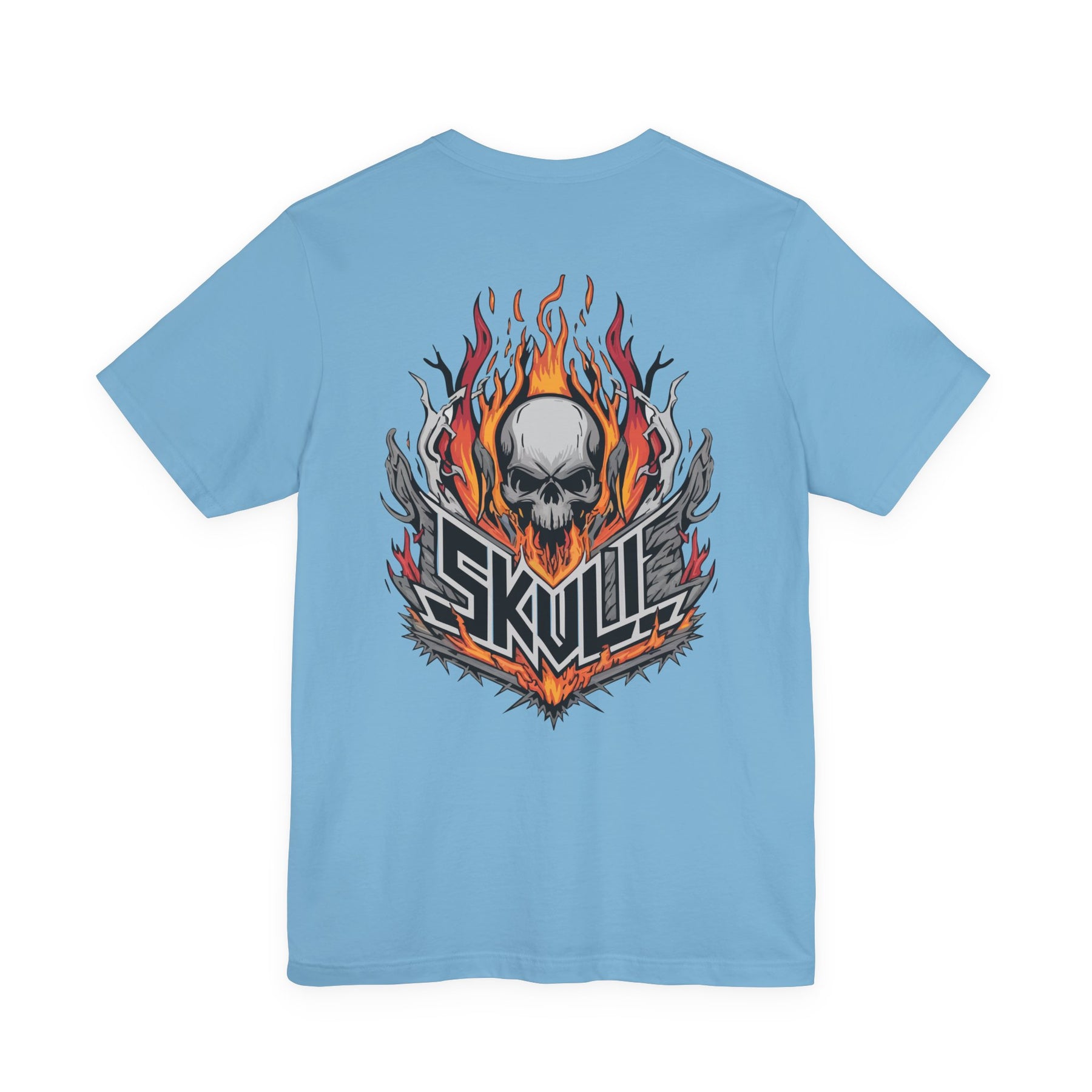 This lightweight tee wears like rebellion and warmth all at once. A smoldering fire-skull print sits front and center, its flickering flames rendered with crisp detail — the kind of image that turns heads and starts conversations. Soft, airy cotton drapes close to the body without clinging, so the design reads clearly whether you’re layered under a jacket or standing alone in the heat of a summer street show. The ribbed collar and shoulder tape keep the silhouette neat after washes, while side seams preserve shape so the shirt stays true to the moment you first put it on. It’s made for people who collect lived-in looks: riders, gig-goers, firepit storytellers, and anyone who likes a little edge in their everyday. Wear it to late-night bonfires, underground shows, or when you want your outfit to say, quietly and fiercely, that you’ve got stories worth hearing.