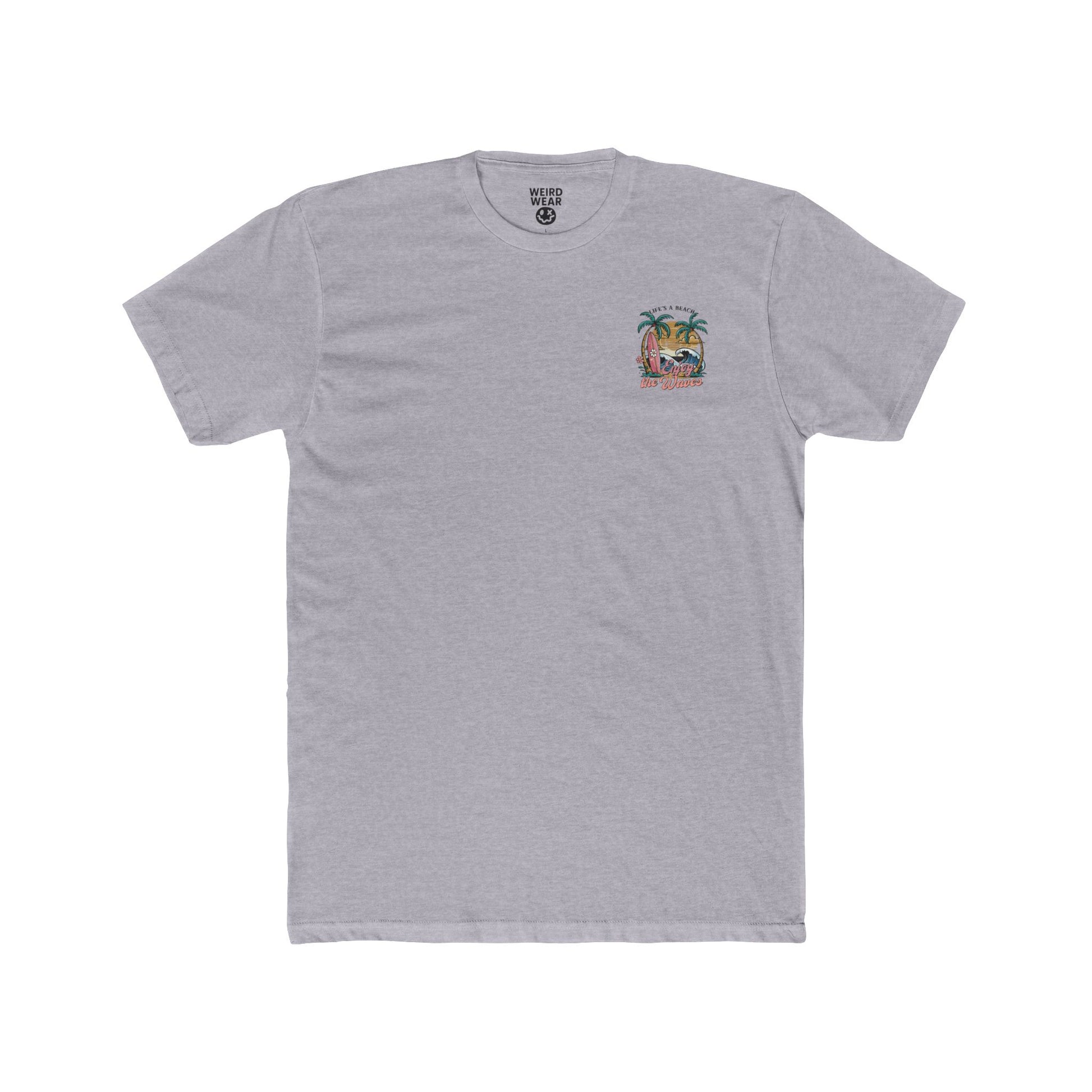 A lightweight cotton crew tee that carries a laid-back beach vibe. Soft to the touch and breathable, it features a small chest motif and a vibrant back print with surfboards, palms, and a sunset that reads “Life’s a Beach — Enjoy the Waves.” The classic crew neckline and straight fit make it easy to layer or wear solo. Built with reinforced shoulder tape and side seams for long-lasting shape, plus ribbed collar detailing to keep the neckline crisp. DTF sleeve printing adds a handcrafted, durable finish. Made for adults and compliant with EU REACH standards, with a two-year EU warranty.