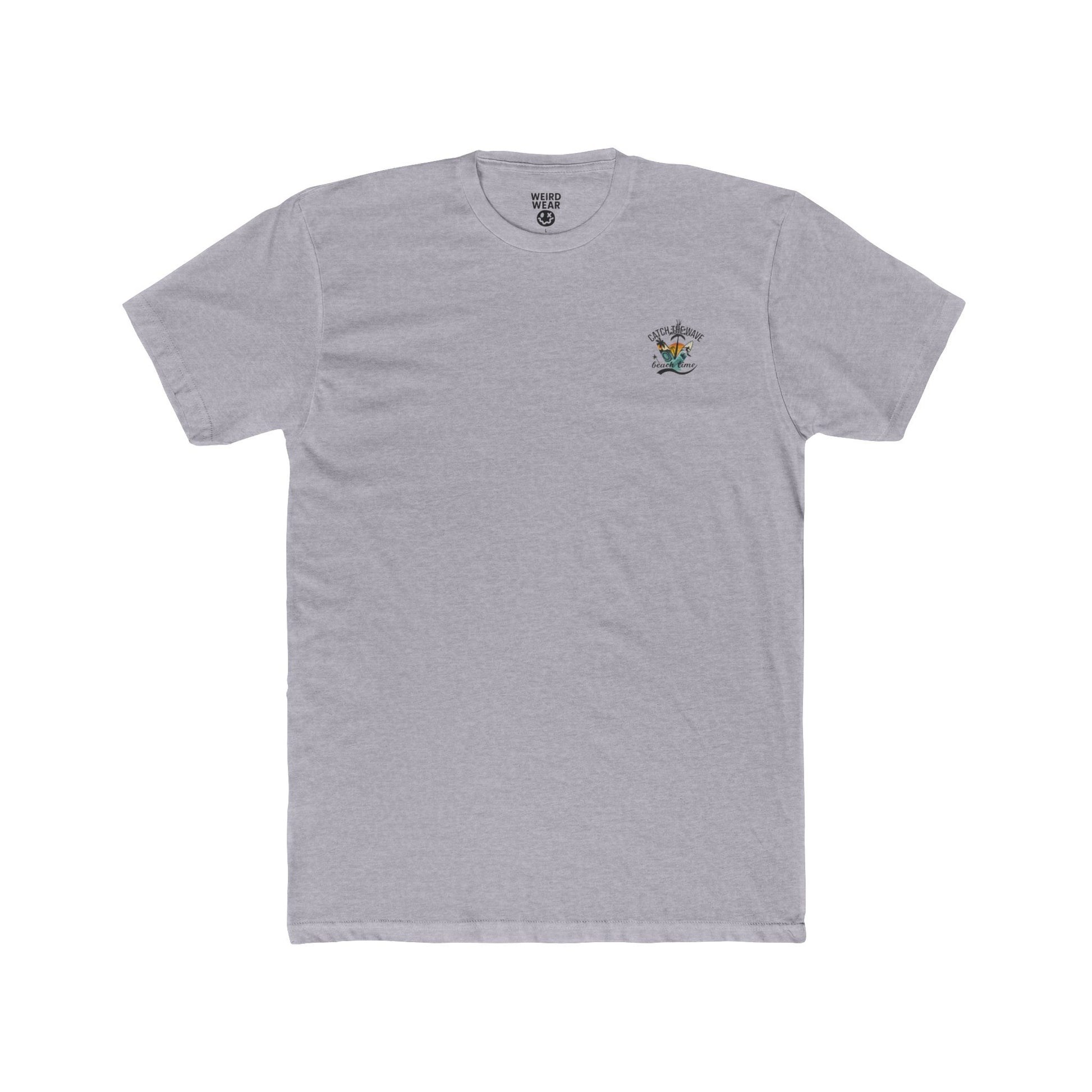 Light, breathable, and quietly confident — this cotton crew brings the beach with you. A small sun-and-palm emblem sits on the chest like a private badge of summer, while the back unfolds into a sunlit scene: a rolling wave, silhouetted palms and the phrase “Catch the Wave / beach time.” The soft, 4.3 oz fabric drapes easily under a jacket or stands alone on warm days. Sleeve prints are applied with Direct-to-Film for crisp color and long wear. Built with shoulder tape and side seams, it keeps its shape through repeat wear and washes. Wear it for slow mornings by the shore, boardwalk strolls, or evenings around a bonfire — it settles into moments that linger.